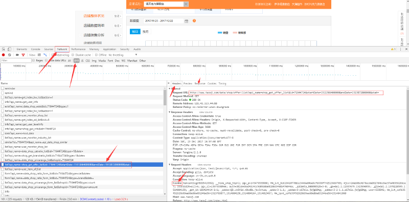 请求URL还可以进一步分析其参数组成。以图中的URL为例,http://www.taosj.com/协议和主机地址,data/shop/offer/list主机下的目录,api_name=shop_get_offer_list...stat=长长的参数列表。