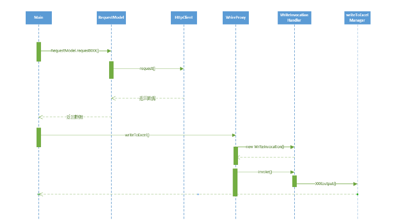 WriteToExcel()方法。 writeProxy创建动态代理。- 动态代理的方法里面调用